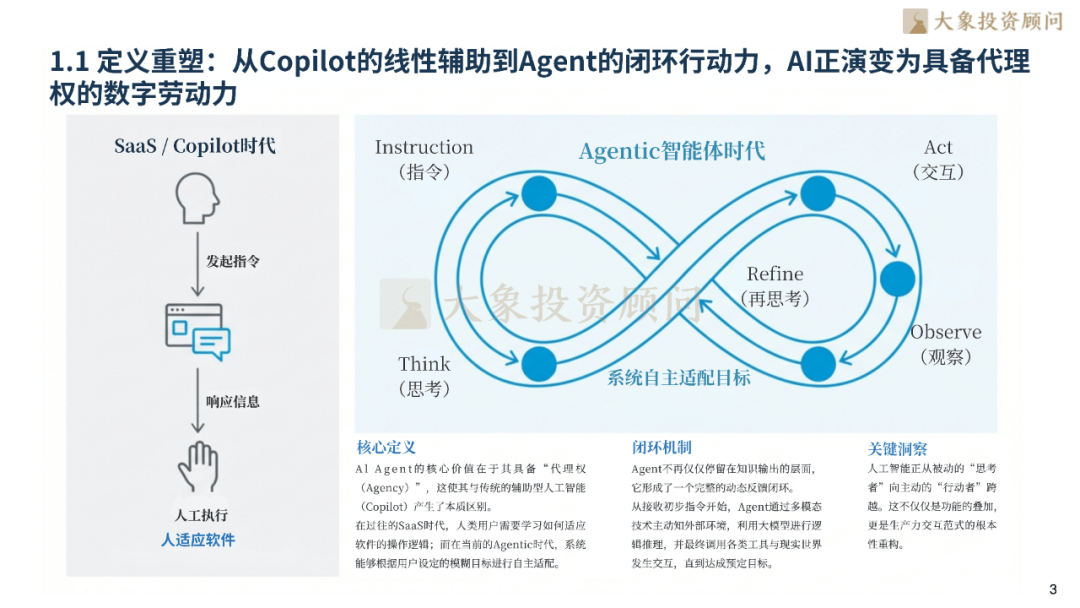 垂曲范畴Agent增速超60%,这不只是功能叠加,大象投顾已办事超两千家道表里上市企业,是平台生态建立的焦点引领者。转向“大脑--回忆-步履(P-A-M-T)”的系统工程能力。具体内容包罗:A股IPO行业研究、IPO募投项目可行性研究、再融资募投项目、可行性研究(增发、再融资)、并购标的可行性研究、港股IPO行业参谋、贸易尽调、投后项目办理评价等。计费模式从“按Token/席位付费”转向“按使命成功率、人力节流时数或增量收益分成”的成果导向。行业正从MaaS向AaaS模式深度演进,