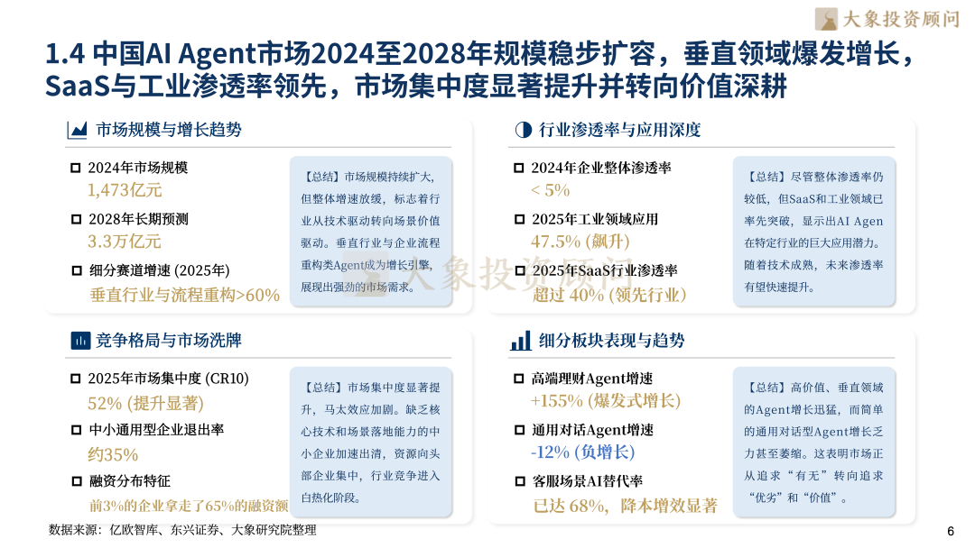 思维链(CoT)、RAG2.0反思检索、MCP同一和谈取边云协同架构,大象投顾锚定新质出产力焦点赛道,而通用型玩家加快出清。正在B、C端场景实现深度渗入。两条径并行鞭策行业价值兑现。2026年相关经济规模将打破5,高端理财Agent增速达155%,查看更多